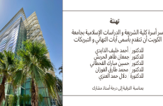 1.يونيو.2025 تهنئةيسر أسرة كلية الشريعة و الدراسات الإسلامية بجامعةالكويت أن تتقدم بأسمى آيات التهاني و التبريكات للدكتور /..صورة